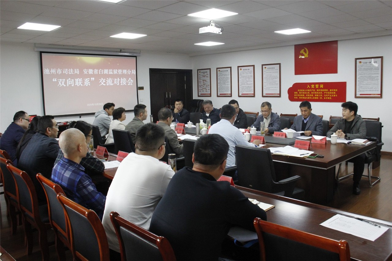 为进一步统筹推进“五项工作”高质量发展,构建“监地联动、优势互补、资源共享、协同高效”工作格局,池州市司法局与安徽省白湖监狱管理分局开展“双向联系”交流对接会。